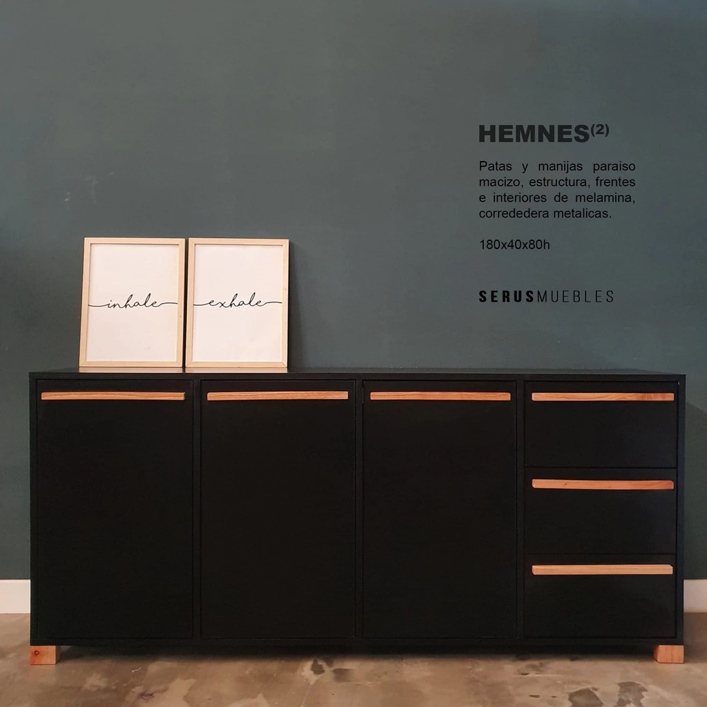 Patas y manijas de paraíso macizo laqueado al poliuretano transparente semi mate, estructura, frentes e interiores de melamina.